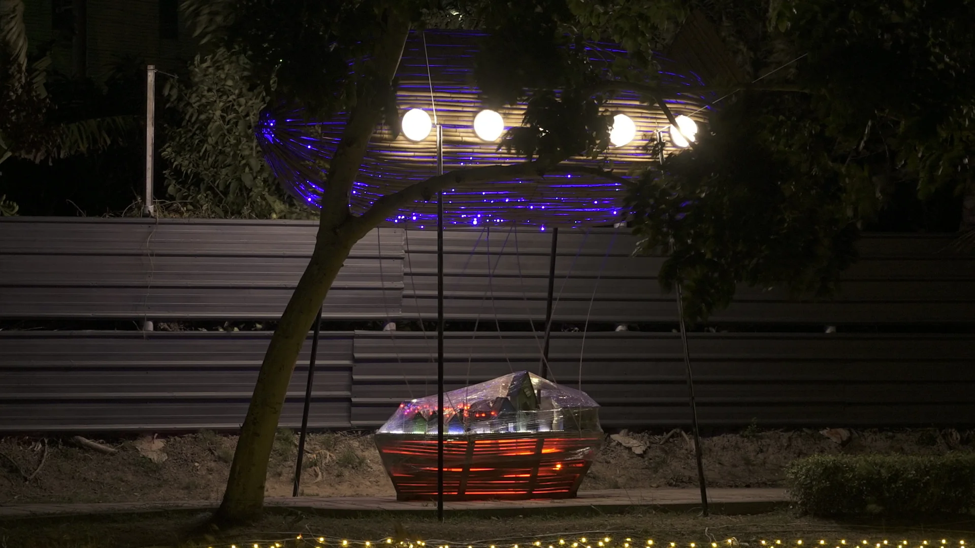 In our perceivable space, myriads of border-crossing actions have been taken in a creeping and constant manner. The team created Unrelated, a translucent visual installation, with bamboo, timber, iron, steel wire and LED lights, and then installed it on the surface of the water. The vertical bamboo slices interweave the real and the virtual in this space and produce a riveting intersection of shadow and light in the night breeze. As far as the team is concerned, life per se is essentially featured by a concatenation of encounters, seemingly unintentional yet in fact causally related. Those seemingly unrelated happenings could be the results of predestined appointments.